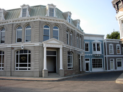 Above is a sporting goods store featured in the film. In the shot Rudy is about to shoot the lady vampires with a wooden arrow. The next two photos below show the row of buildings that made up the stores in this scene.